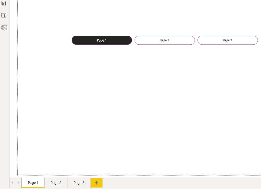 The second approach is to add a button/shape for each page. In this example, I put a rectangular shape for each page. I have two pages for this report.
