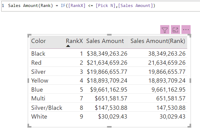 In this example, we will find Top N Product Colors based on their Sales Amount.